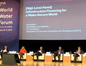 在韩国第七届世界水论坛上,围绕分布大邱和庆州两地、贯穿500多次讨论的“实施”这一主题,聚集了世界各地水领域的成员。威立雅CEO安东尼.弗雷罗在由经合组织和世界水理事会组织的一次会议的两场高层讨论中,分别关于“创新的实施”和“基础建设的融资”代表集团做了发言。